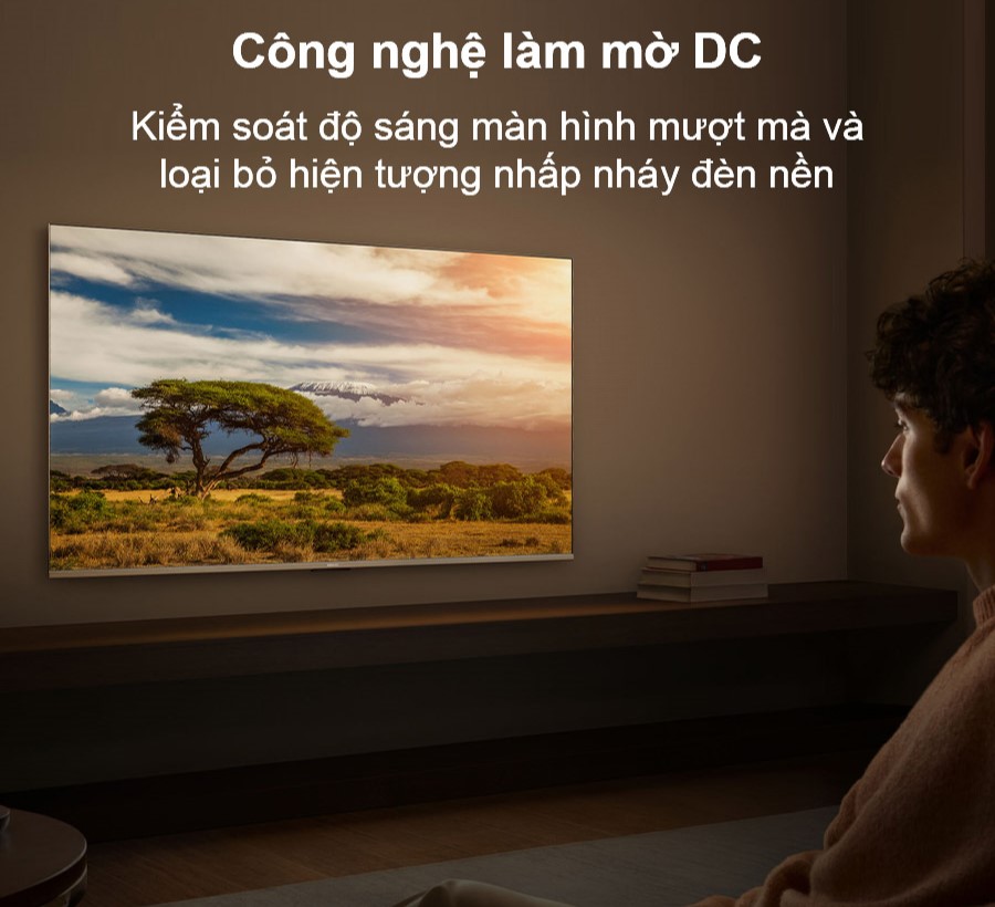 Không chỉ chú trọng đến chất lượng hình ảnh, tivi Xiaomi A Pro 55 inch QLED 2026 còn tích hợp chế độ lọc ánh sáng xanh và công nghệ làm mờ DC Dimming. Những công nghệ này giúp điều chỉnh độ sáng mượt mà, loại bỏ hiện tượng nhấp nháy đèn nền và giảm thiểu tác động của ánh sáng xanh – từ đó giúp người dùng bảo vệ mắt, giảm cảm giác mỏi mắt khi xem lâu.