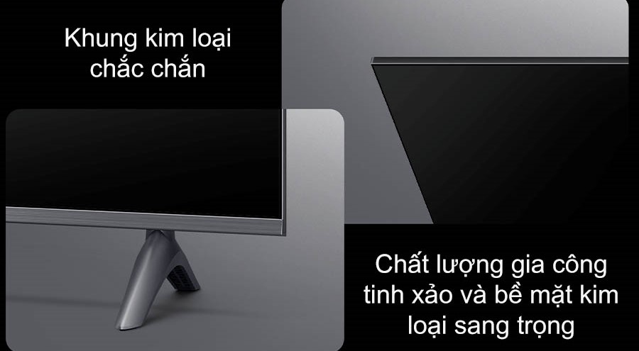 Xiaomi còn đầu tư vào thiết kế với lớp viền kim loại bền bỉ, cứng cáp và sang trọng. Sự kết hợp giữa các đường nét tinh tế và bề mặt kim loại được gia công tỉ mỉ mang đến một tổng thể thẩm mỹ, hài hòa với mọi phong cách nội thất. Chiếc tivi giờ đây không chỉ là thiết bị giải trí mà còn là điểm nhất đắt giá trong không gian sống hiện đại.