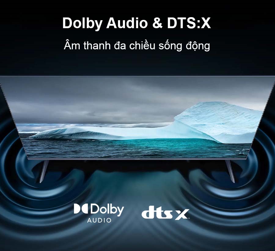 Được chứng nhận bởi Dolby Audio™ và DTS:X, chiếc tivi mang đến trải nghiệm âm thanh chuẩn điện ảnh ngay tại nhà. Mỗi tiếng động nhỏ đều được thể hiện rõ ràng – từ tiếng mưa rơi đến tiếng động cơ rền vang – làm tăng thêm chiều sâu cho nội dung bạn đang thưởng thức.