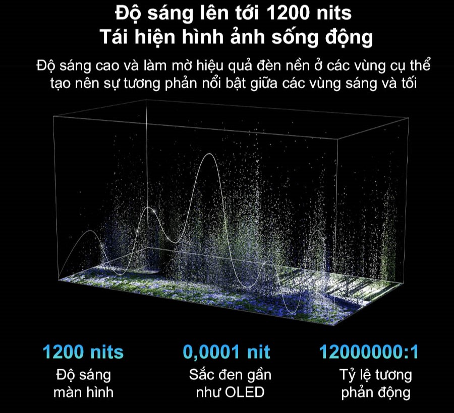 Khả năng tái hiện hình ảnh chân thực với hiệu ứng sáng và tối sống động giúp mang đến trải nghiệm hình ảnh tinh tế hơn, giảm thiểu hiện tượng quầng sáng so với TV LCD thông thường. Công nghệ này cũng tự động điều chỉnh ánh sáng theo môi trường xung quanh, giúp tái hiện sắc thái ánh sáng và bóng đổ một cách tự nhiên.