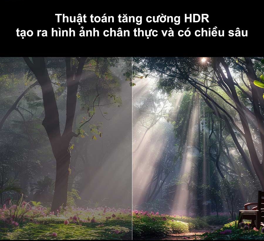 Thuật toán tăng cường HDR trên tivi Xiaomi tích hợp công nghệ AI để phân tích hình ảnh đa chiều theo từng khung hình, tinh chỉnh, tối ưu hóa độ sáng và tối. Điều này giúp mang đến cho người dùng trải nghiệm hình ảnh UHD chân thực và có chiều sâu.
