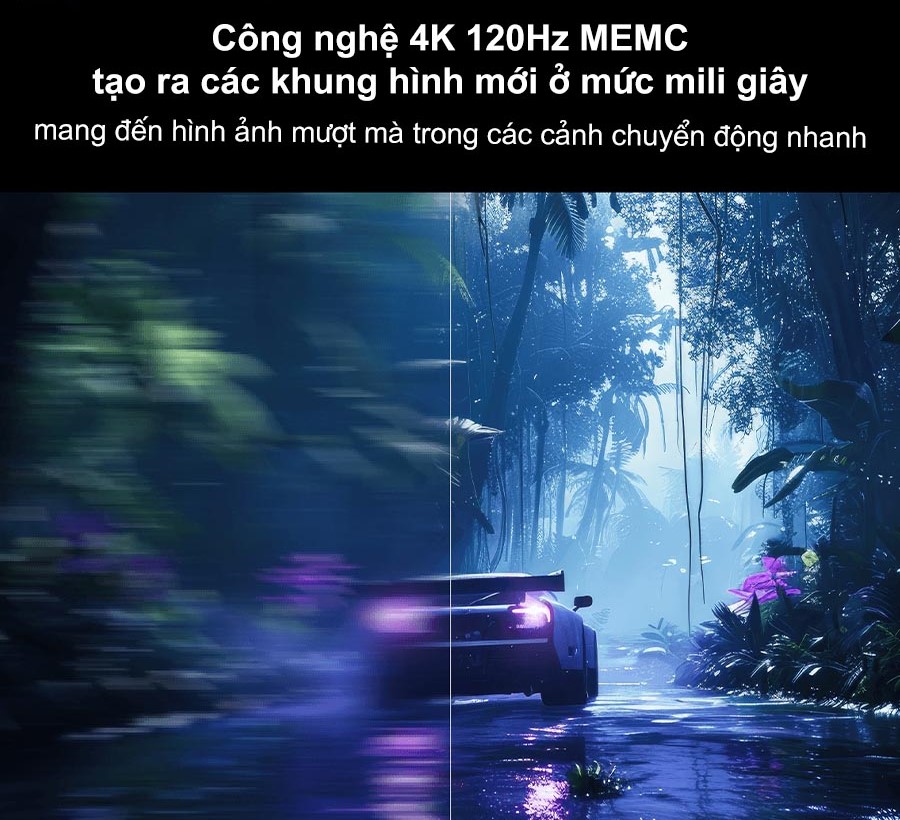Với công nghệ 4K 120Hz MEMC (Motion Estimation, Motion Compensation), tivi tạo ra các khung hình mới ở mức mili giây, mang đến hình ảnh mượt mà trong các cảnh chuyển động nhanh, từ các sự kiện thể thao, phim hành động đến các trò chơi video đối kháng.