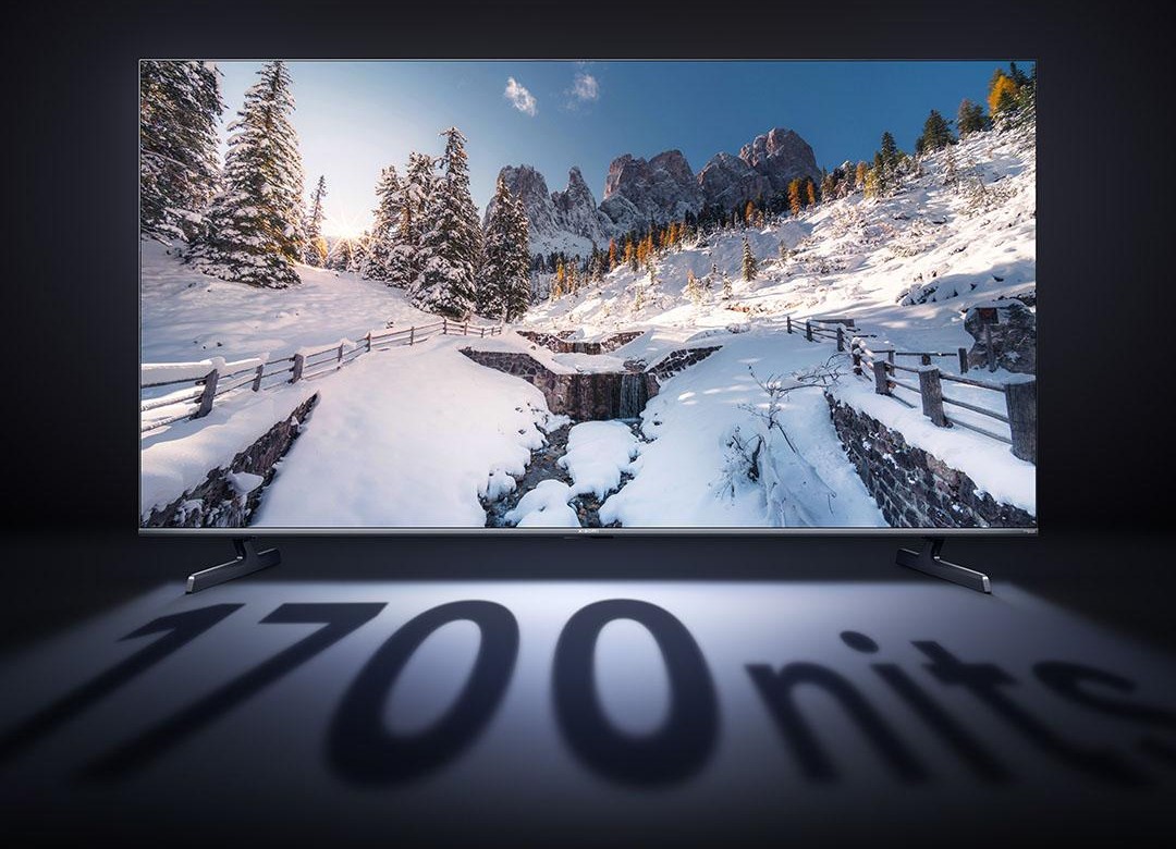 Tấm nền QD-Mini LED cho khả năng hiển thị ấn tượng với độ sáng tối đa 1700 nits. Nhờ lớp phủ chống phản chiếu, hình ảnh vẫn rõ ràng ngay cả trong môi trường nhiều ánh sáng, mang đến trải nghiệm xem ổn định ở mọi khung cảnh. Dải màu rộng DCI-P3 đạt 94% cùng độ sâu 1,07 tỷ màu giúp từng khung hình trở nên sống động, từ những cảnh phim điện ảnh đến các chương trình truyền hình.