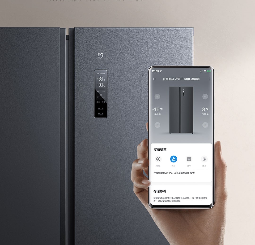 Được trang bị kết nối thông minh, tủ lạnh Xiaomi Mijia 610L có thể dễ dàng đồng bộ với ứng dụng Mi Home. Người dùng có thể điều chỉnh nhiệt độ, kiểm tra trạng thái tủ hoặc bật chế độ làm lạnh nhanh ngay trên điện thoại – dù đang ở bất kỳ đâu. Bảng điều khiển cảm ứng được đặt bên ngoài cửa tủ, cho phép thay đổi chế độ làm lạnh chỉ trong vài thao tác. 4 chế độ làm lạnh chuyên dụng mang đến trải nghiệm linh hoạt, phù hợp với từng nhu cầu sử dụng khác nhau như lưu trữ thịt cá, làm lạnh đồ uống hay bảo quản rau củ.