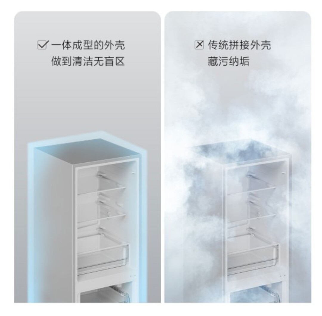 Xiaomi 215L sở hữu thiết kế nguyên khối liền mạch, được tạo thành từ một tấm vật liệu đúc nguyên bản, không để lại khe hở. Nhờ đó, hạn chế tối đa việc tích tụ bụi bẩn và vi khuẩn, đồng thời giữ lạnh tốt hơn, giúp tiết kiệm điện năng. So với các thiết kế ghép nối truyền thống, kiểu dáng này không chỉ mang lại vẻ ngoài tinh tế mà còn nâng cao hiệu quả bảo quản thực phẩm trong thời gian dài.