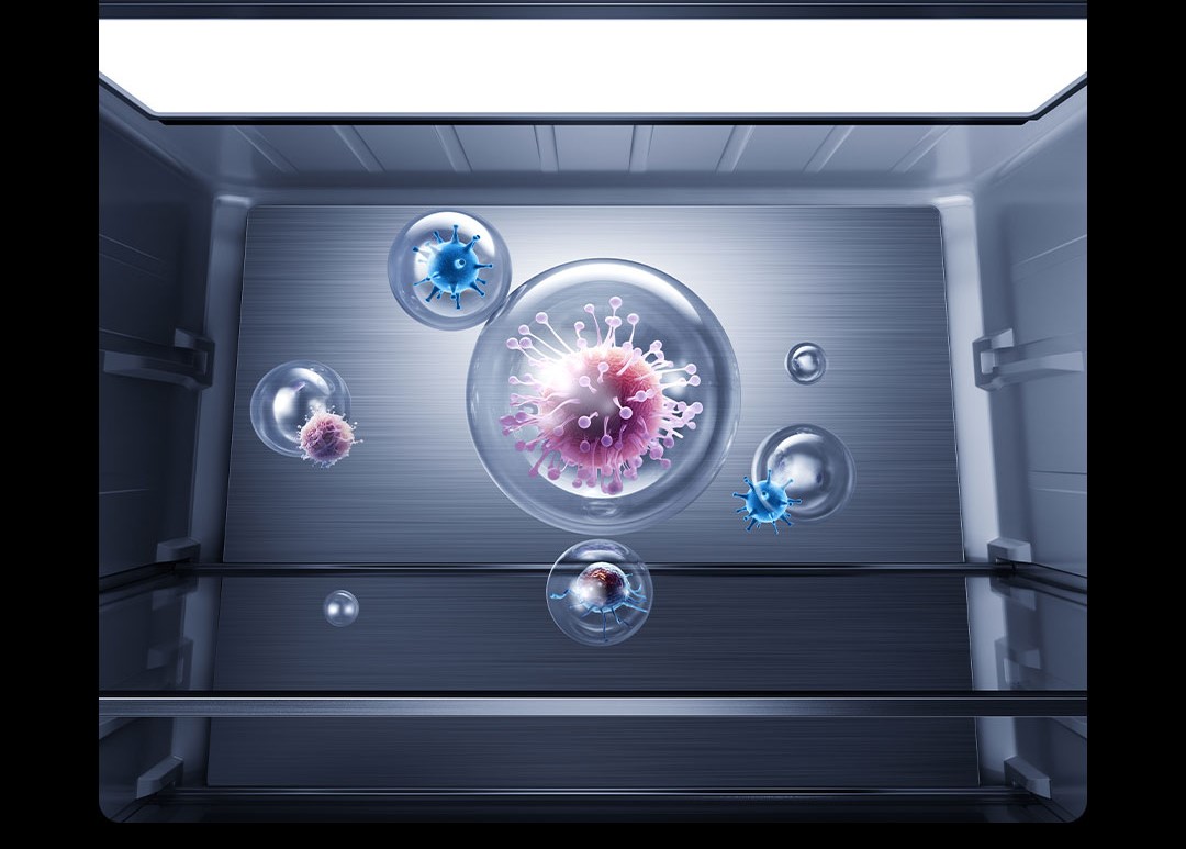 Xiaomi Mijia 508L Pro còn được tích hợp công nghệ thanh lọc chủ động với hệ thống máy tạo ion dương và âm trong ống dẫn khí. Hệ thống này giúp khử mùi, diệt khuẩn, loại bỏ vi rút, xử lý khí ethylene và loại bỏ dư lượng hóa chất nông nghiệp, đảm bảo thực phẩm luôn sạch sẽ và an toàn. Với hiệu suất mạnh mẽ, tủ lạnh đạt hiệu quả khử trùng >99,9%, loại bỏ vi rút >99,99%, khử khí ethylene >99% và làm sạch dư lượng hóa chất >99%, mang đến không gian bảo quản trong lành và an toàn.