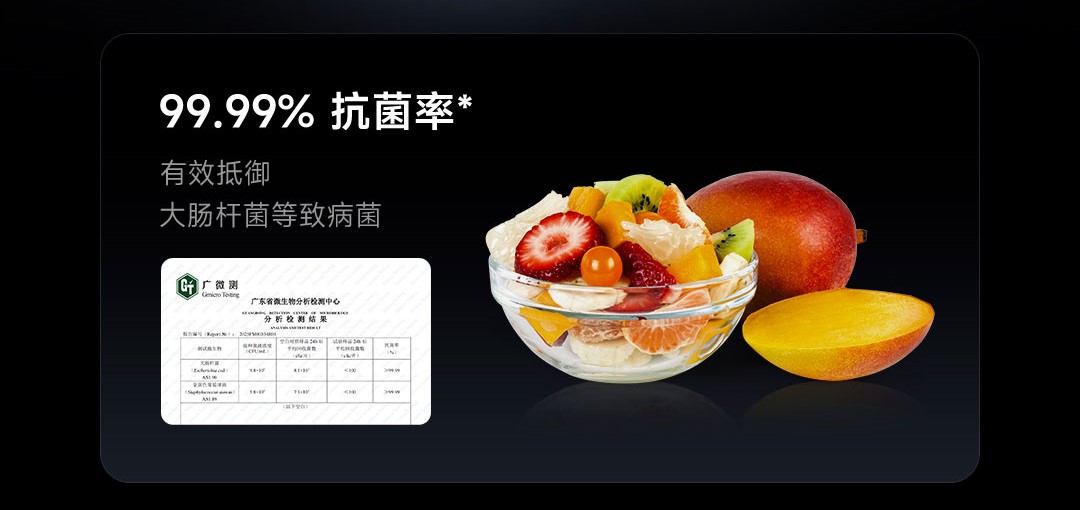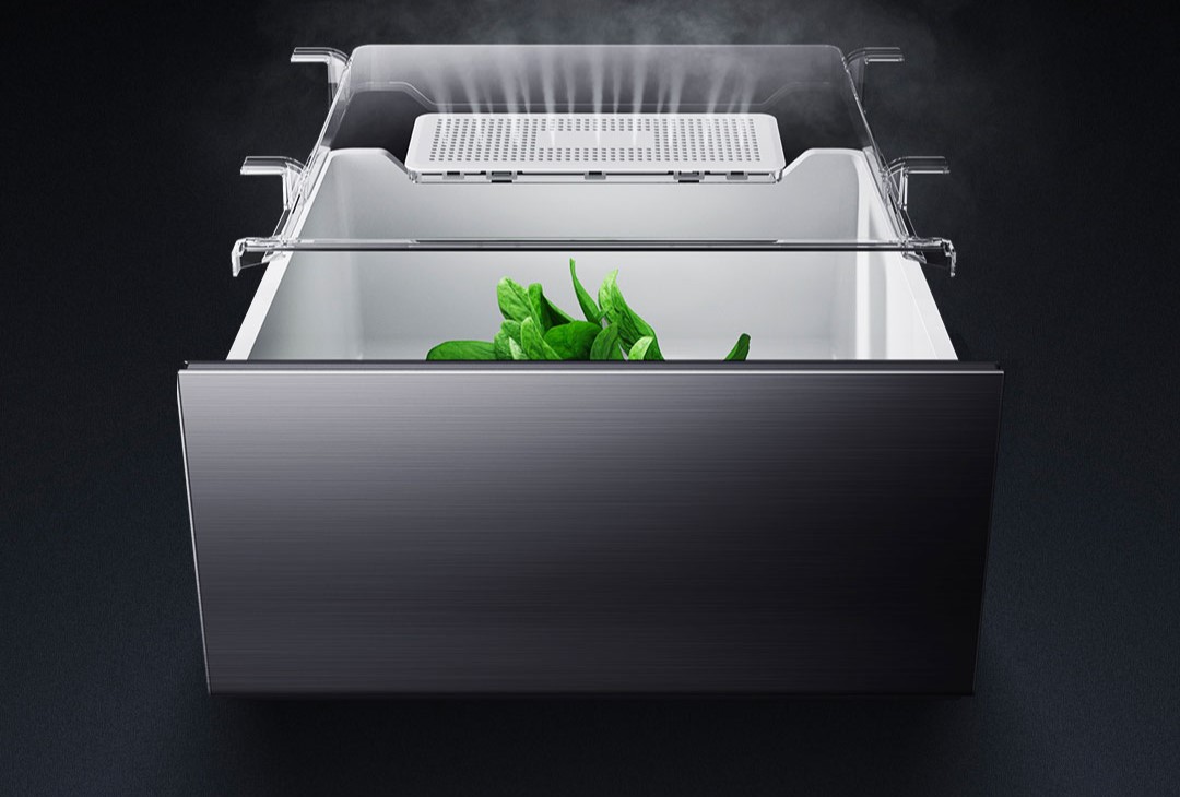 Ngoài ra, công nghệ giữ ẩm sinh thái với màng phân tử nước giúp rau củ luôn tươi mọng đến 7 ngày, giảm thất thoát nước. Toàn bộ thân máy được chế tạo từ vật liệu cách nhiệt bọt xốp siêu nhỏ chỉ 180μm, vừa giảm độ dày thành tủ, vừa đảm bảo hiệu quả giữ nhiệt vượt trội.