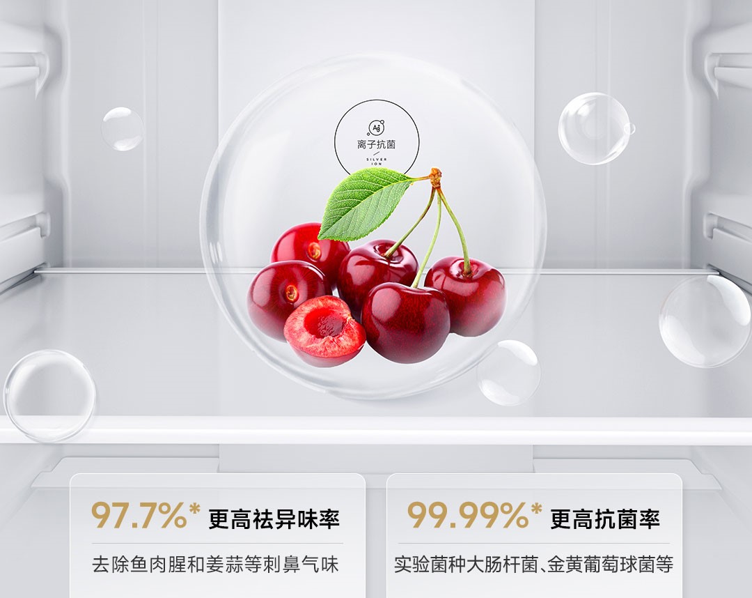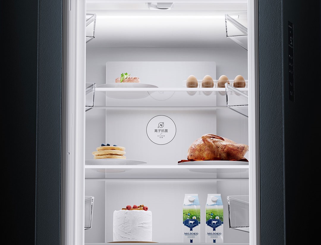 Điểm mạnh lớn nhất mà nhà sản xuất Mijia trang bị cho chiếc tủ lạnh dung tích lớn này của mình đó chính là công nghệ khử trùng bằng ion năng lượng cao. Tủ lạnh 4 cánh Xiaomi Mijia 606L có thể tạo ra hàng triệu ion âm và dương giúp khả năng khử trùng đạt tới 99,9%, loại bỏ hoàn toàn vi khuẩn giúp thực phẩm không chỉ tươi lâu hơn mà còn đảm bảo cho sức khỏe người dùng. Công nghệ này chính là sự đột phá mới thay cho tính năng kháng khuẩn thụ động trước đó, làm cho tốc độ khử trùng và tuổi thọ của tủ cao hơn.